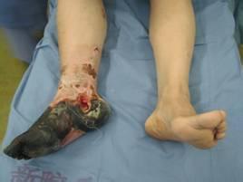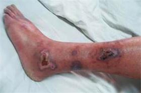 动脉硬化:患肢疼痛、怕冷、皮温降低,跛行,皮肤变薄,毛发脱落;严重者出现缺血、肢体出现组织坏死,皮肤温度明显降低,肢体末端出现溃疡,足趾呈现暗紫色坏死表现。